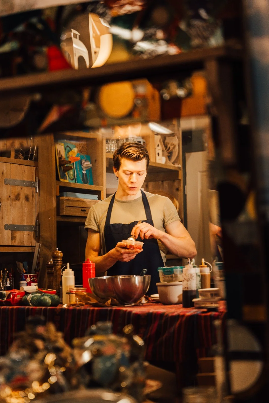 Na mijn studie werkte ik enkele jaren als productontwerper. Dat werk leerde mij gestructureerd denken, processen ontwerpen en oog hebben voor detail. Tegelijkertijd merkte ik dat ik het meeste energie kreeg van momenten waarop ik kookte voor anderen. De dynamiek van een diner en het creëren van een complete ervaring voelde voor mij vanzelfsprekend.